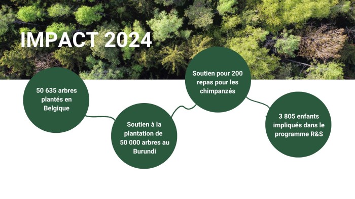 Votre don sera utilisé pour restaurer la nature en Belgique et en Afrique, et pour aider et protéger les chimpanzés. Nous pensons qu'il est important d'être transparent sur l'impact de votre don. Vous trouverez un aperçu complet dans notre rapport annuel.